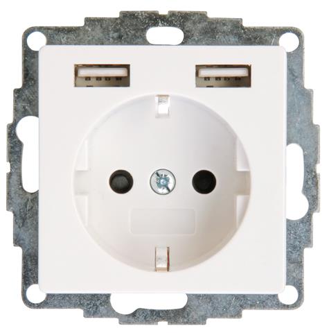 ATHENIS - Schutzkontakt-Steckdose mit 2 USB-Anschlüssen, Farbe: reinweiss