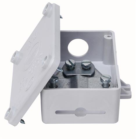 Banderderdose/Verteilerkasten mit Klemmblock, Eingang für Erdungsbandeisen bis 40mm breite, Ausgangfür Kabel bis Ø 20mm