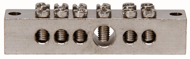 Bad-Erdungsschiene, Anschlussmöglichkeiten: 1x 6 -25mm² und 5x 1,5 - 6mm²