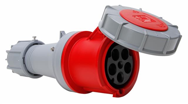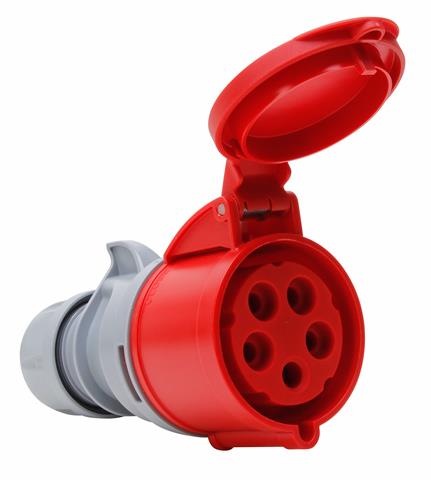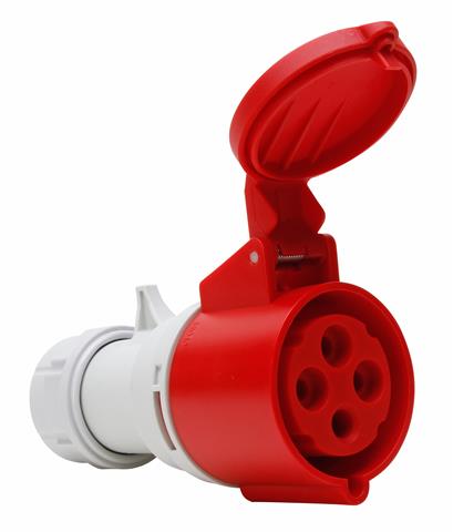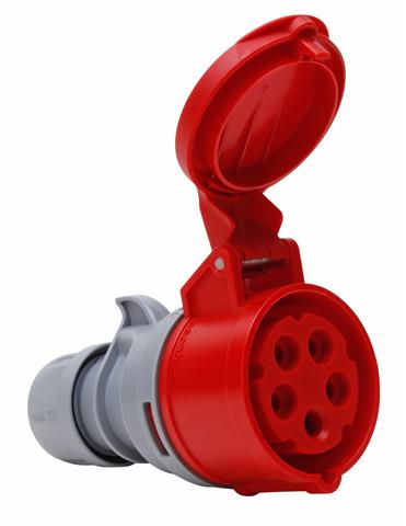 CEE-Kupplung mit Klappdeckel, kurze Einführungstülle, 4-polig