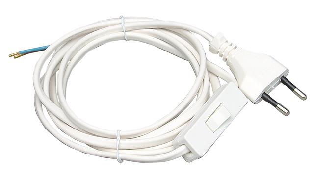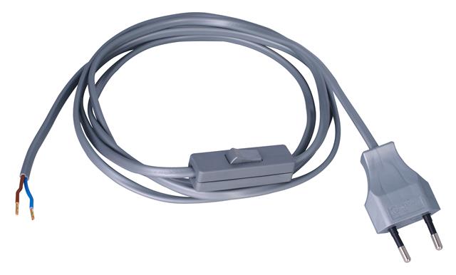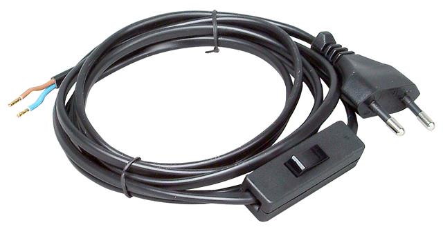 Europa-Zuleitung, Europa-Stecker und Leitungsende mit Aderendhülsen, Schnurzwischenschalter 1-polig