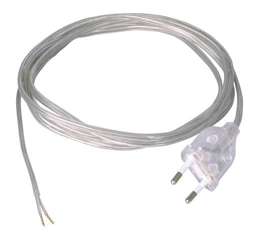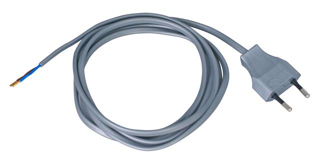 Europa-Zuleitung, Europa-Stecker und abgemanteltesLeitungsende mit Aderendhülsen, 2-polig
