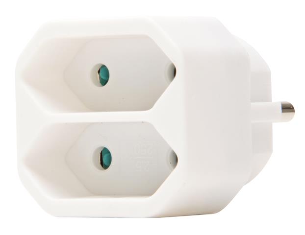 Adapter, 2-fach: Anschluss für 2 Euro-Stecker (2x 2,5A), erhöhter Berührungsschutz, Farbe: arktisweiß