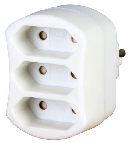 Adapter, 3-fach: Anschluss für 3 Euro-Stecker (3x 2,5A), auch für MSK-Steckdosen geeignet, extra flache Bauweise, Farbe: arktisweiß