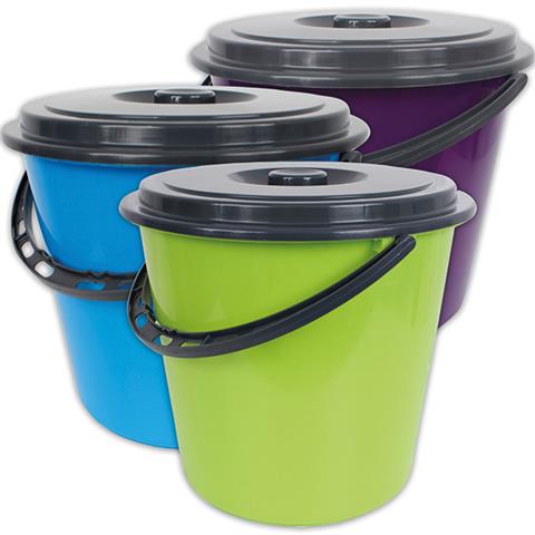 Eimer mit Kunststoffbügel und Deckel, 10 Liter,