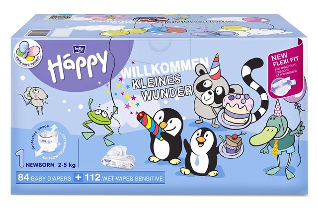 bella baby Happy Windeln Gr.1 Newborn 2-5kg HAPPY BOX & 112 Feuchttücher