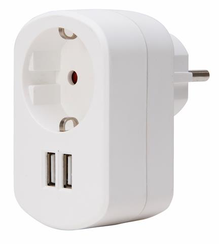 Adapter mit 2-fach USB max. 3 A, DC 5V und Steckdose mit erhöhtem Berührungsschutz