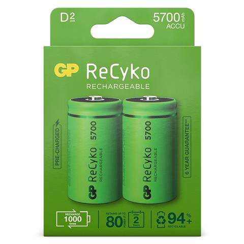 D Mono Akku GP NiMH 5700 mAh ReCyko 1,2V 2 Stück