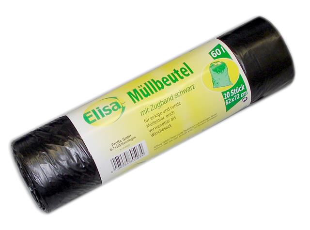 Elisa Zugbandmüllbeutel 60 ltr. 20er schwarz